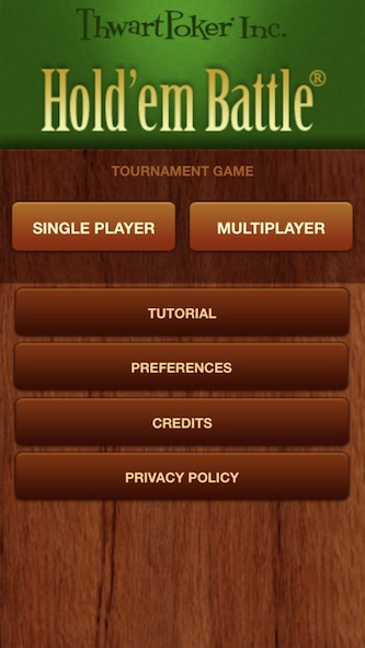 By popular demand, ThwartPoker Inc. is delighted to introduce real-time multiplayer Hold’em Battle® with both All-in and Limit betting. WiFi network used for communication. Hold’em Battle® has both Single Player (vs. bots) and Multiplayer (between live players) capability. Playing it makes you a better thinker, strategist and poker player!